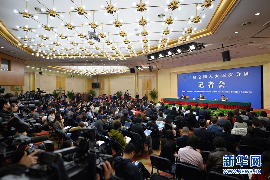 3月11日,十二届全国人大四次会议新闻中心举行记者会,邀请环境保护部部长陈吉宁就“加强生态环境保护”的相关问题回答中外记者的提问。新华社记者 李鑫 摄