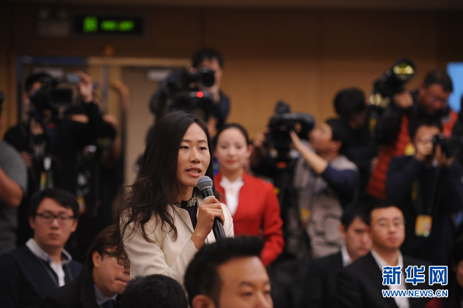 十二届全国人大四次会议新闻中心于3月14日(星期一)10时在梅地亚中心多功能厅举行记者会,邀请交通运输部部长杨传堂、交通运输部运输服务司司长刘小明、北京交通发展研究中心主任郭继孚就“深化出租汽车改革与发展”的相关问题回答中外记者的提问。图为 第一财经记者提问。新华网/中国政府网 陈杰 摄
