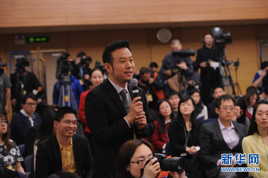 十二届全国人大四次会议新闻中心于3月14日(星期一)10时在梅地亚中心多功能厅举行记者会,邀请交通运输部部长杨传堂、交通运输部运输服务司司长刘小明、北京交通发展研究中心主任郭继孚就“深化出租汽车改革与发展”的相关问题回答中外记者的提问。图为 中央电视台记者提问。新华网/中国政府网 陈杰 摄