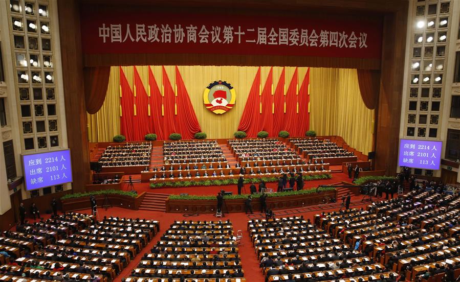 3月14日,全国政协十二届四次会议在北京人民大会堂举行闭幕会。新华社记者 殷刚 摄