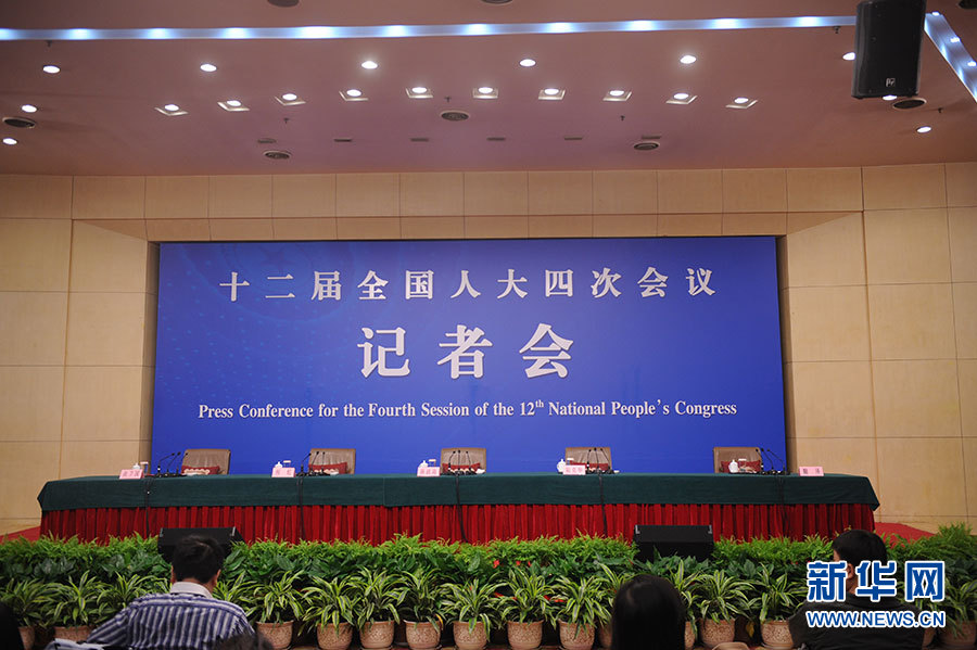 十二届全国人大四次会议新闻中心于3月15日(星期二)10时在梅地亚中心多功能厅举行记者会,邀请住房和城乡建设部部长陈政高、副部长陆克华、副部长倪虹就“棚户区改造和房地产工作”的相关问题回答中外记者的提问。图为记者会现场。新华网/中国政府网 陈杰 摄