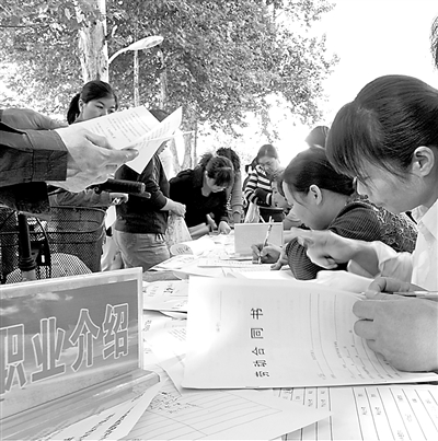 河南省平顶山市卫东区政府日前举行招聘洽谈会,以帮助下岗失业人员尽快找到工作岗位。招聘会吸引128家用人单位进场,500余名求职者现场与用人单位达成就业意向。牛智广 摄