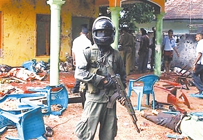 10月6日,在斯里兰卡北部城镇阿努拉德普勒,一名自杀式袭击者在老汽车站附近引爆了身上炸弹。包括斯前陆军参谋长佩雷拉及夫人在内至少27人在爆炸中死亡,60余人受伤。图为一名士兵在爆炸现场警戒。吉平 供图