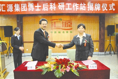 经国家人力资源和社会保障部批准,北京汇源集团博士后科研工作站于9月28日正式挂牌设立。据介绍,工作站设立后,将培养造就一批果汁行业需要的跨学科、复合型、战略型和创新型人才,促进产学研结合,进一步增强企业的科技创新能力,为建设现代化的果蔬产业体系作出贡献。