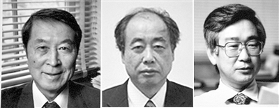 10月7日,瑞典皇家科学院在斯德哥尔摩宣布,美国籍科学家南部阳一郎和日本科学家小林诚、益川敏英获得2008年诺贝尔物理学奖。这是南部阳一郎(左)、小林诚(中)和益川敏英的拼版照片。新华社发