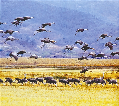 顺天市,就选择以黑仙鹤为市鸟。据说,黑仙鹤目前在世上仅存一万只了。黑仙鹤是候鸟,每年在青藏高原繁殖,冬季飞来过冬。每年4月份又飞回可可西里,喜欢在高寒草甸沼泽地或湖泊河流沼泽地中活动,并选择适应的地区进行繁殖育幼。顺天湾优良平安的栖息环境,每年都吸引着黑仙鹤们,据观测,这些年,把顺天湾当作第二故乡的黑仙鹤,已从60只,增加到360只。