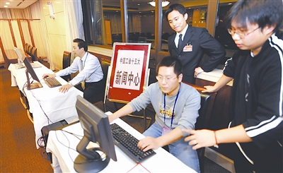 10月14日下午,设在京西宾馆的中国工会十五大新闻中心正式开始运行。