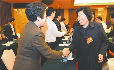 中华全国总工会副主席、书记处第一书记孙春兰等全总领导10月15日晚来到代表驻地看望各代表团代表。