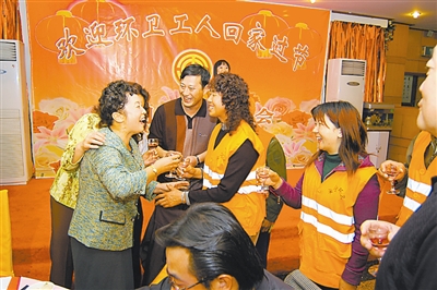 环卫、排水工人十分高兴回“家”过节