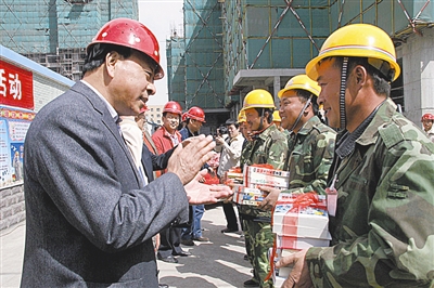 兵团工会主席、党组书记蒋建勋在建筑工地慰问农民工