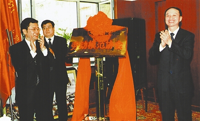 自治区党委副书记、兵团党委书记、政委聂卫国(左),兵团党委副书记、司令员华士飞(右),兵团党委常委、纪委书记、副政委翟小衡(中)为兵团劳模协会成立揭牌