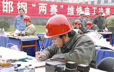 “创争”活动,为职工素质提升插上腾飞翅膀。邯钢近年来先后建成了以薄板坯连铸连轧、冷轧为代表的一批具有世界先进水平的大型化、现代化装备,这对职工素质提出了更高的要求。邯钢工会扎实推进“创建学习型组织、争做知识型员工”活动,抓特色、抓品牌、抓实效,把群众性技术培训和技术练兵作为工作重点。25所基层工会职工业校、15个公司级培训基地和22个基层培训基地,本着干什么、学什么,缺什么、补什么的原则,开展办班培训、知识竞赛、每周一题、每周一考、每月一赛等活动。职工技能大赛已连续举办了17届,参赛职工都占到在职职工的80%。2004年以来有50人次被授予全国和省、市技术能手荣誉称号,多次在全国、省市和行业系统职业技能竞赛中取得好成绩,荣获第四届全国钢铁行业职业技能竞赛十佳组织单位。群众性技术培训和技术练兵活动的扎实开展,成为企业行政开展正规性岗位培训和继续教育之外提高职工整体素质的强力补充,有力提高了广大职工驾驭现代化装备的技能。