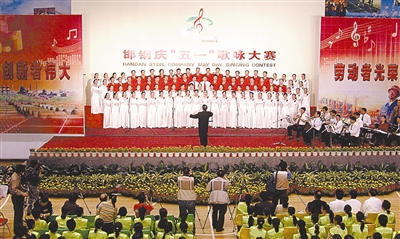 服务生产、服务职工,搭建七彩斑斓的文化舞台。“先锋颂”、“保稳定、树正气、促发展”、“我为红旗添光彩”、“邯钢明天更美好”等一系列征文和演讲比赛,“辉煌的历程”、“主人翁风采”、“今日邯钢”、“见证新区”、“钢城安康颂”等美术书法摄影展览和比赛,被誉为最及时、最直观、最有效的形势任务目标教育活动。让职工人人成为企业文化的参与者、创造者和享受者。“邯钢形象代言人大赛”彰显了邯钢人靓丽的风采,并为邯钢厂服的确定作出了历史性贡献。“邯钢职工家庭才艺展示大赛”,几代邯钢人同台献艺,充分展示了邯钢人多姿多彩的家庭文化,展现了邯钢人幸福安康的家庭生活。还有共创邯钢美好明天演唱会、舞蹈曲艺小品大赛、职工健身秧歌大赛、少儿才艺大赛等一系列异彩纷呈的文化艺术活动,成为丰富企业文化创作成果,推动企业文化建设的品牌,展示职工精神追求的载体。以“强我体魄,建设邯钢”为宗旨的职工体育活动蓬勃开展。职工业余体育运动会每三年举办一次,2008年10月11日举行的九运会开幕式内容丰富、形式精美、规模宏大。迎春长跑活动已坚持了29年,厂际单位间更是月月有活动、季季有比赛。邯钢工会所辖的多功能的体育馆、四季恒温的游泳馆,以及配备在各生活区的健身路径,为职工健身提供了良好条件和服务。邯钢连续多年被授予全国和河北省职工体育先进单位,2005年荣获全国基层体育先进单位,2006年荣获全国基层体育示范单位荣誉称号。