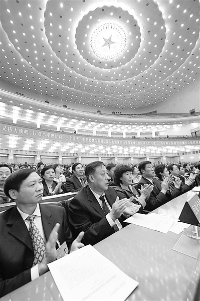 中国工会第十五次全国代表大会10月21日在北京闭幕,代表们对通过的各项决议报以热烈的掌声。本报记者 张宪 摄
