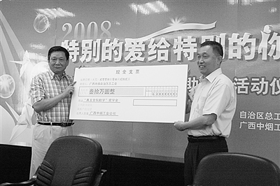 广西中烟与广西壮族自治区总工会连续四年合办“金秋助学”活动,每年出资30万元支助贫困新入学大学生。
