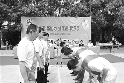 中国中铁电气化局三公司充分认识人才在企业竞争中的作用,努力打造高技能、高素质的职工团队。为每位新职工确定有技术特长的师傅,一对一地亲手传授业务知识。图为公司正在为新招收的大学毕业生举行拜师仪式。李文科 田野 摄