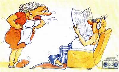 妻子在家成天啰嗦个没完,面对高分贝的噪音,忍无可忍的丈夫想出了妙招,使用“音乐过滤器”来减轻烦恼。