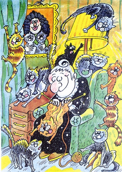 爱猫的女主人与宠物有说不完的话,道不完的情。家——温暖的家——爱猫之家。谁知道丈夫躲到哪里去了?