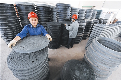 废塑料袋、饮料瓶这些令人头疼的塑料垃圾,经过江西东乡县的江西绿谷科技有限公司特殊加工后,可生产出复合材料井盖等市政设施用品。新华社记者 宋振平 摄