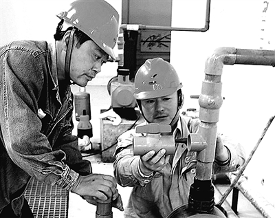 “再加把劲,加药计量泵管路改造这活就完成了!”10月29日, 山东莱钢集团动力部水力车间检修班钳工王天东(左)边忙活边给孙鹏鼓劲。过去,王天东搞创新闷头琢磨,有时路径不通了就不得不放弃。后来,从企业创建学习型团队过程中他受到启发,主动与酷爱钻研技术的孙鹏联手,跟设备运行中的弊端较上劲。这两年中,他们改造成功10多个项目,成为被运行工们羡慕的创新能手。 卢燕华 摄