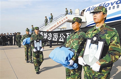 当日下午,在苏丹遭绑架遇害的5名中国工人的骨灰由中方包机运抵石家庄。获救的4名工人、中国政府处理在苏丹被绑架工人善后事宜前方工作组和苏丹政府工作组成员同机抵达。 新华社记者 巩志宏 摄