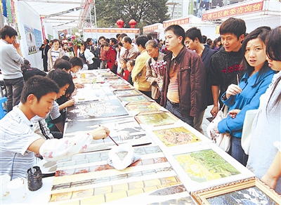 11月2日,重庆市某职业技术学校的学生们在向参加咨询活动的农民工展示自己在职业技术学校学到的技能。当日是第二个重庆市农民工日,来自重庆市教育委员会和各区县教育部门、职业技术学校的上百人,就农民工子女入学、职业技术培训、学费减免等问题为农民工们进行了专业咨询。 新华社记者 刘潺 摄