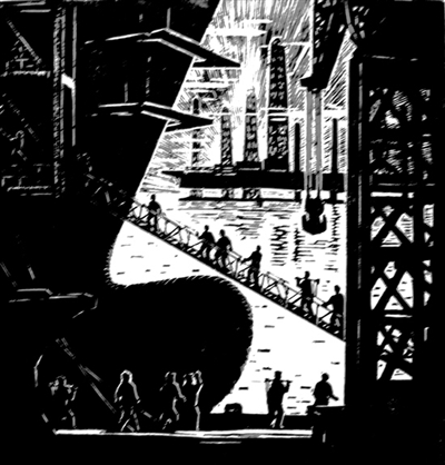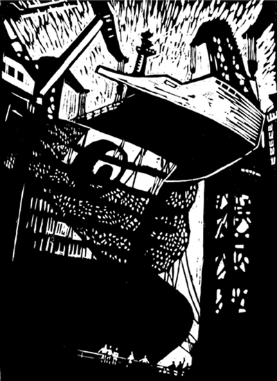 有着百年历史的大连船厂,职工版画创作始自上世纪50年代,工人版画坚持现实主义的创作方向,与时俱进,紧密联系社会和生产实践,使作品张扬出独特的艺术风格。他们的创作题材取自企业,风格新颖,体现了企业特色,具有浓郁的时代印记和生活气息。职工版画创作如同黑白变奏曲,生动地反映了船厂职工的工作、理想、信念、追求和情趣, 职工版画的艺术水平有一定的代表性。不同时期的作品,不仅像一把尺子,丈量着企业文化发展的历程,更像一面镜子映照着在改革大潮中企业职工的精神风貌。 木子