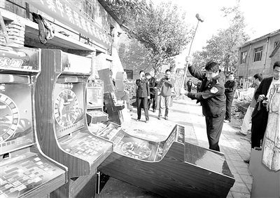 10月24日,河南省许昌市公安局在许昌市郊区集中销毁近日收缴的赌博机近百台。为净化社会环境,打击各类赌博违法犯罪活动,特别是利用赌博机等工具引诱青少年参与赌博的犯罪活动,许昌市各级公安机关,加大查处和打击力度,今年以来共查处和销毁赌博机300余台。河南省 张燕军 摄