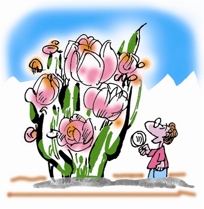 正当雷蒙达满心疑惑之时,在脚下松软的枯枝败草中,他踩到了一样东西,拾起一看,是一只封闭的铁罐。他撬开铁罐,从中拿出一张羊皮卷来。他小心地展开羊皮卷,上面写着字,虽然有些模糊,他还是细细地看下去。这是一篇旅行日记,日期是70年前,原来曾经有人到过这里,并关注着这种植物。日记中写道:“我被这种植物吸引了,研究许久,不知它们是否会开花。经我的判断,它们已经生长了30年了……”雷蒙达极为震惊,难道这种植物要生长一百年才开花?短短的花期过了,它们也就死去。