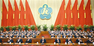 11月11日,中国残疾人联合会第五次全国代表大会在北京人民大会堂开幕。胡锦涛、温家宝、贾庆林、李长春、习近平、李克强、贺国强、周永康等在主席台就座,祝贺大会召开。新华社记者 兰红光 摄