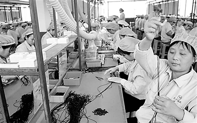 11月4日,江西省樟树市昌傅镇的农村妇女在企业车间生产电子产品。位于樟树市昌傅镇的京家山科技有限公司是2007年引进的一家台资企业。该公司把培训项目、设备、企业生产车间搬到农村,让当地农民就近参加技能和安全培训,为当地500多名农村妇女提供了在家门口就业的机会。 周科 摄(新华社发)