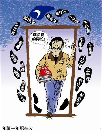 “长期劳累”,这个词并不难理解;但是,作为一个教师,因为什么原因而长期劳累却恐怕不会有多少人能理解。比如人们会想,教师难道不是一个很轻松的职业吗?不过就是备备课、讲讲课、然后给学生批改一下作业罢了,这如何会累?何况,作为教师,每年还有3个月的连续假期!