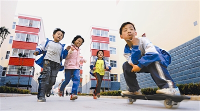 11月8日,在平煤一矿新建的职工住宅楼群里,一群从棚户区刚刚搬来的职工子弟在高兴地玩耍