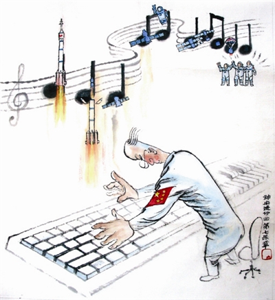 工人的画(第1310期)漫画,与“神七”一起遨游太空