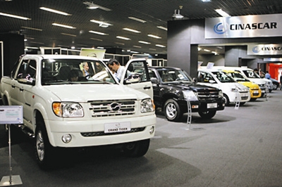 11月13日,在哥伦比亚首都波哥大举行的国际汽车展,为具有较高性价比的中国汽车开辟了专馆,吸引了众多参观者的目光。新华社发(莱昂纳多·穆尼奥斯 摄)