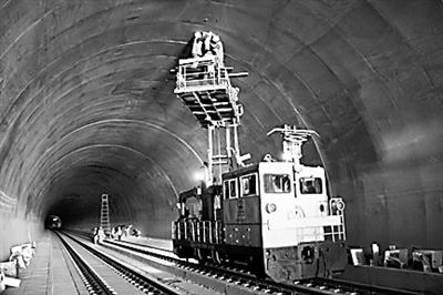由中铁电化局三公司施工的温福线电气化作业车近日上线施工,标志着温福线上部作业全面铺开,大大加快了整个工程的施工进度。图为电气化作业车正在隧道中安装吊柱。赵萌 摄