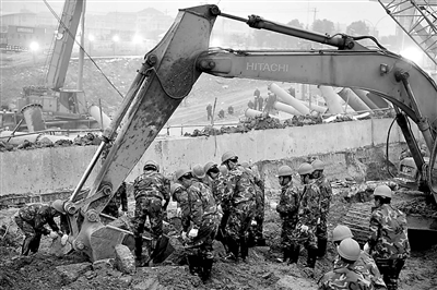 杭州地铁工地塌陷事故 救援工作紧张进行