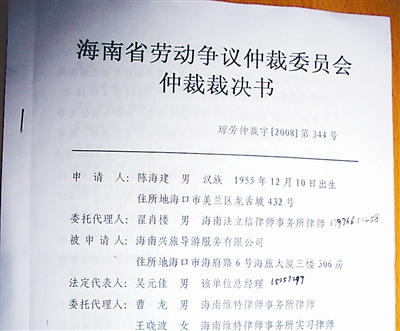 之后,陈海建在海南省财贸工会的支持下,向海南省劳动争议仲裁委员会提起劳动仲裁。