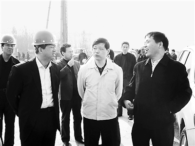 图为京广客专河南公司副总经理陈建中(图中),河南安阳市副市长倪豫州在中铁三局集团公司副总经理张振兴陪同下检查三局管段工地。 孙清华 张文学摄