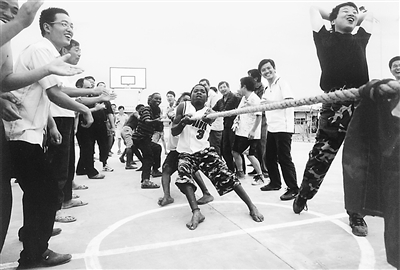 11月16日,参与安哥拉社会住房项目建设的中国中铁员工正在和非洲员工参加拔河友谊赛。为给远在国外的员工营造一个舒心、放心、温馨的生活环境,该项目部从细处着手,认真抓好工地文化、工地卫生和工地生活为主的“三工”建设,让员工住得舒心、吃得放心、娱乐开心,同时也增进了和非洲人民的友谊。
