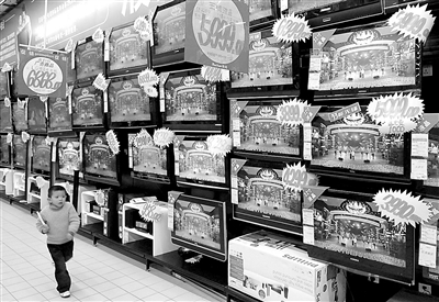 11月20日,浙江台州市区某商场内,待售的国产液晶电视上贴满了惊爆价标签,显得格外醒目。11月以来,TCL、长虹、创维等国内大部分品牌液晶电视纷纷采取大规模降价行动。据了解,此次大范围降价与国际严峻经济形势、电子消费市场出现萎缩、液晶面板资源出现供过于求、人民币汇率持续下降等因素有关。 郏策 摄