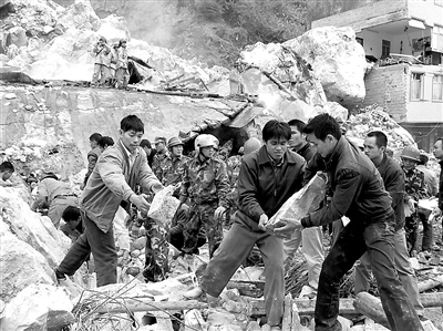 11月23日11时35分左右,广西河池市凤山县发生一起严重地质灾害事故。在距凤山县城约1公里的凤山至巴马二级公路上,有四五万立方米石方塌下,300多米的路面被填埋。据现场救援指挥部初步统计,事故造成6栋楼房,19间房屋被埋。截至19时,搜救人员已在现场发现1名遇难者,此外还有6名伤者已经被送往医院救治。初步估计还有5人被埋。任民 摄