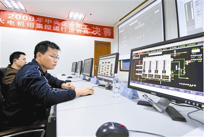 11月25日,参赛选手在比赛中。当日,中央企业职工技能大赛火电机组集控运行值班员决赛在山东邹县电厂拉开帷幕。这次比赛由国务院国资委、人力资源和社会保障部共同主办,来自电力行业8家中央企业和6个省市国资委的226名优秀火电机组集控运行值班员参加了此次比赛。新华社记者 朱峥 摄