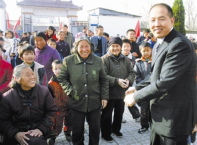 11月26日,在河南省上蔡县村委换届选举中,张全收(右一)当选朱里镇拐子杨村村委会主任。他表示让全村人按土地入股,产业化经营,不但保证村民基本收入,还可以把劳动力解放出来。
