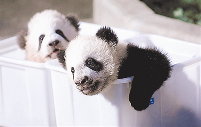 11月27日,陕西省珍稀野生动物抢救饲养研究中心繁育的两只将近4个月大的大熊猫宝宝,被西安一家企业冠名认养。这家企业将出资改善这两只大熊猫的饲养环境和膳食标准。 新华社记者 丁海涛 摄