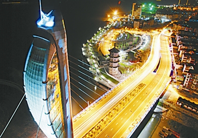 目前,该公园一期工程五个标段面临完工,其中B段主题公园、D段新吉和广场、E段中江塔公园已建成对游人开放。公园中的古塔、桥梁、喷泉、绿地、长廊等景观元素与绚丽多彩的灯光相融,成为长江岸畔上一道迷人的风景线。 刘兰峰摄