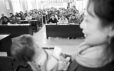11月27日,育婴护理专家向返乡妇女传授婴幼儿护理技能。