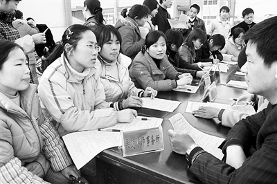 12月3日,安徽省含山县司法工作者和律师正在接受农民工的现场咨询。当日,该县相关部门联合开展“送法进企业”活动,司法工作者和律师就农民工所关心的《劳动合同法》、《物权法》、《工伤保险条例》等法律法规开展咨询,现场解答农民工的法律问题,帮助农民工维护自身合法权益。