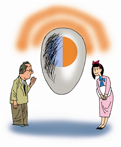 第二天,朋友还在这家酒店用早餐,毕竟除了生鸡蛋,其它的菜肴都称得上难以遇到的美味佳肴,而且那种用料节省、搭配合理的烹饪理念,深谙今日顾客的消费心理。惟一让他觉得无奈的是,他的早餐盘中再次出现了一枚“生鸡蛋”,看着周围的客人都显出很享受的样子,他还是禁不住皱起了眉头。吃还是不吃?他左右为难。