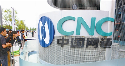 2008年9月13日,市民在看中国网通的LOGL标志。